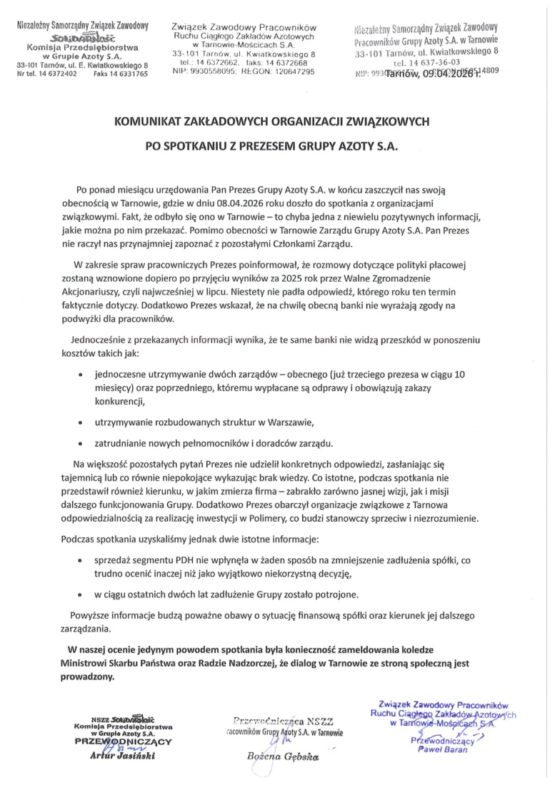 PO SPOTKANIU Z PREZESEM GRUPY AZOTY S.A…